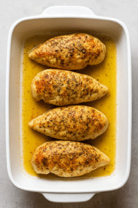 - Arrange in baking dish: Place seasoned chicken in the dish.