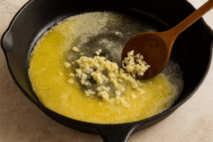 3. Make the sauce: In the same skillet, melt the remaining butter. Add minced garlic and sauté for 30 seconds until fragrant.