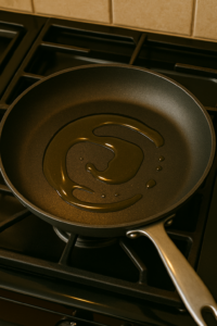 - Step 2 – Heat the Pan: Heat olive oil in a hot skillet over medium-high heat until shimmering.