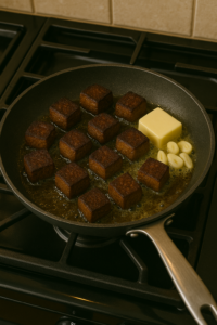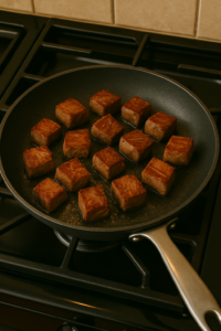 - Step 4 – Flip & Cook:Flip the cubes and cook another 1–2 minutes until browned on all sides but still juicy inside.