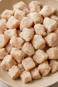 1. Coat the chicken: Toss chicken pieces in flour, season with salt and pepper.