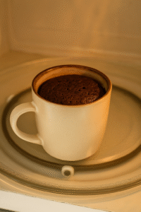 - Check texture: The cake should rise and still be slightly gooey in the center. If it’s too liquid, microwave for 10–15 seconds more.