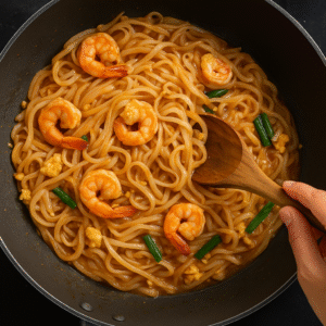 Another reason why This Thai noodle stir-fry is such a beloved recipe worldwide is its versatility. It can be easily adapted for different diets, whether you prefer chicken, shrimp, tofu, or a fully vegetarian version. The dish is also budget-friendly and quick to prepare, making it ideal for students, busy professionals, or families. Its balance of protein, vegetables, and carbohydrates turns it into a wholesome, complete meal that feels comforting yet light.