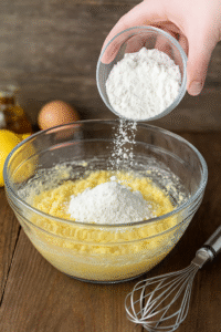 - Add dry ingredients: Gradually add flour and baking soda, stirring until you get a soft dough. If it’s sticky, add 10–20 g more flour.