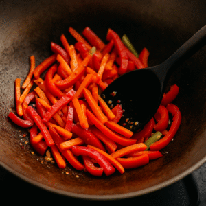 - Add vegetables: Add carrots and bell pepper, stir-fry for 2–3 minutes until just tender.